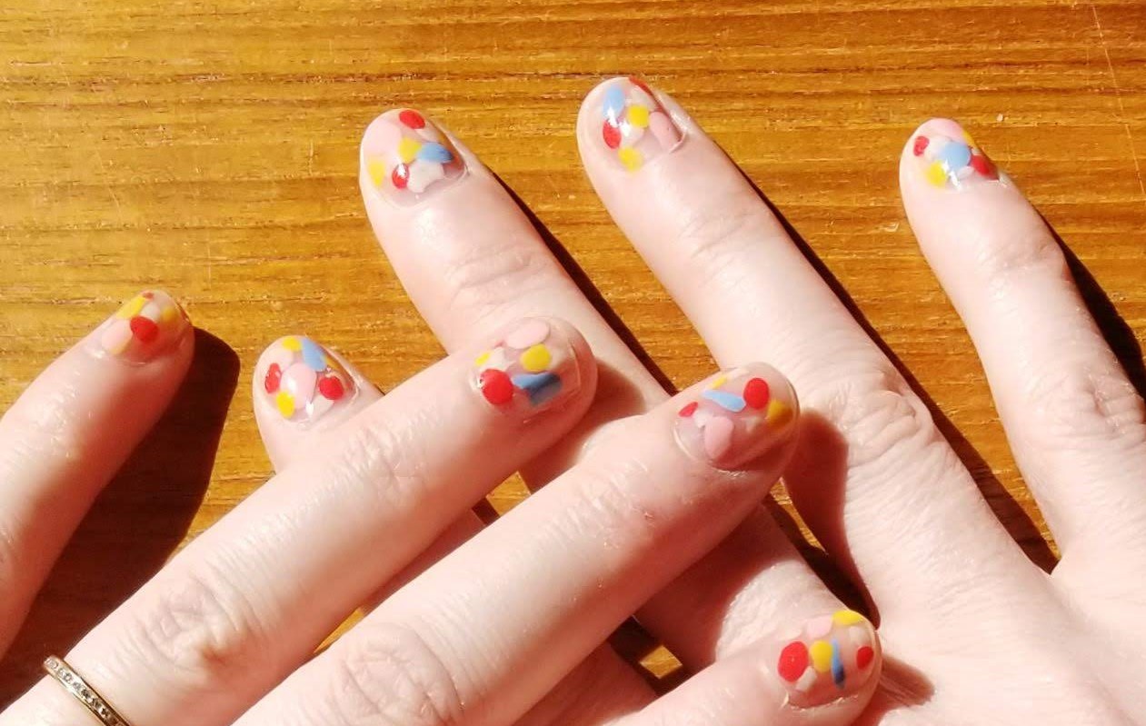 To finish it off, I gave the claws a nice buffing with the floor sander double coat of my favorite quick dry stuff, aptly named “Seche Vite,” which I’ve been in love with for several years after a friend’s recommendation (thanks, Holly <3). Et voila! Terrazzo nails! Just enough self care to hold off on that shower for a few more days without looking TOO scandalous. I figure it will wear nicely too, since there’s no base color and the grow out won’t be super obvious. Cash me in three months with the next paint job, fam.
